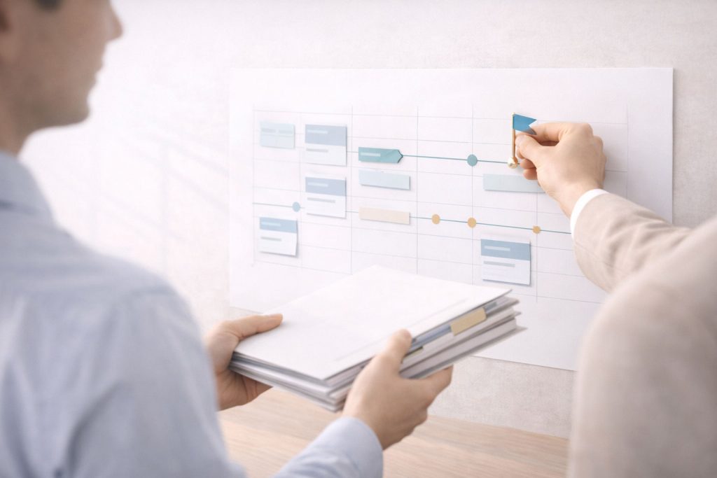 Go-live & Stabilisierung (90 Tage): Nachsteuern, Routinen verankern, Kennzahlen etablieren.